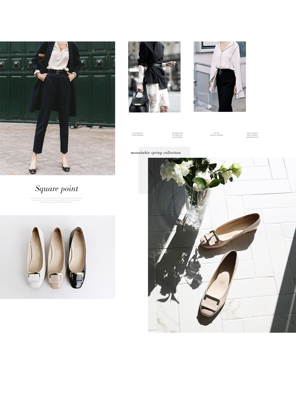 Square point flat shoes.