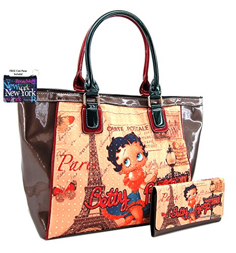 -. Brand : Betty Boop LuxeBag -. Color : Multicoloured -. Department : womens -. Feature : Betty Boop Paris themed large handbag and wallet set / Plus coin purse / Faux leather, Top zip closure / Officially licensed / More details in the description -. PackageQuantity : 2 -. ProductGroup : Shoes -. ProductTypeName : HANDBAG -. Size : Large -. Title : Betty Boop Large Purse Wallet Set, Betty Boop in Paris, BQ9902-SET