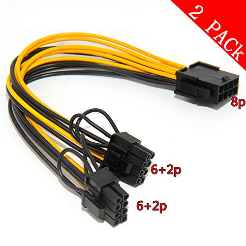 Specifications: Item Type: CPU 8-Pin To Double PCI-E 8-Pin Splitter Cable Material: Plastic Metal Color: Black Yellow Cable length: Approx.23CM 18AWG Wire Connector A: CPU 8-Pin female Connector B: Double PCI-E 8-Pin (6P 2P) male Quantity: 2 piece