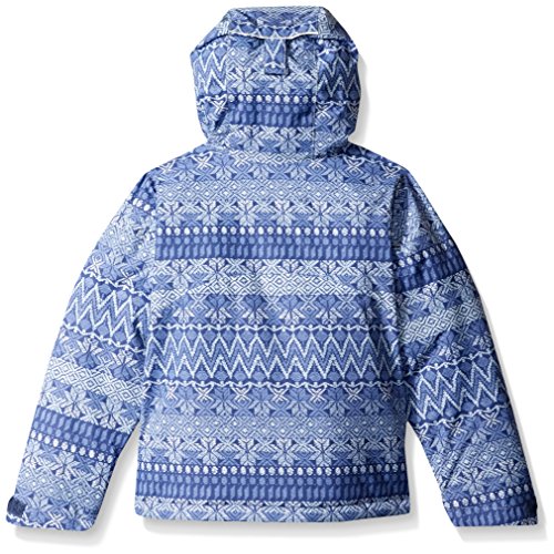 Columbia Infant and Toddler Size Chart Columbia Little Kids and Big Kids Size Chart Lively prints combine with a waterproof nylon shell fabric and tons of toasty insulation to warm up the coldest winter days. Regular Fit is an easy, lightly relaxed fit for comfortable range of motion. Omni-Shield™ Hydra Cloth 3000 shell:• Waterproof fabric resists liquid absorption to prevent staining.• Dries several times faster than traditional fabric.• Retains less moisture than conventional material to stay lighter even when wet. Farenhot insulation:• Low-loft polyfill insulation provides warmth without bulk.• Crimped polyfill increases surface area to improve warmth retention.• 240 g/m² fabric weight. Attached three-piece hood with brim. Full zip with hook-and-loop storm flap. Long sleeves. Hook-and-loop tab cuffs are contoured for improved coverage. Zip hand pockets. Hook-and-loop inner pocket with headphone cord router. Straight hemline. Fully lined. Body: 100% nylon;Lining: 100% nylon;Insulation: 100% polyester. Machine wash and tumble dry. Imported. Measurements: Length: 21 in Product measurements were taken using size SM (7-8 Big Kids). Please note that measurements may vary by size.Feature