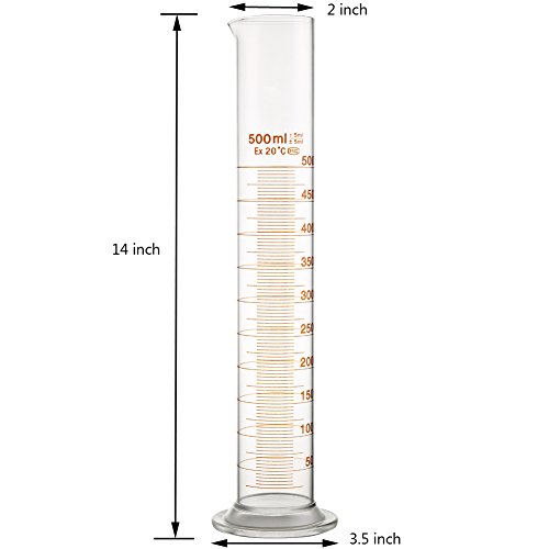 500ml Glass Graduated Cylinder Measuring Bottle Single Metric Scale with Cleaning Brush