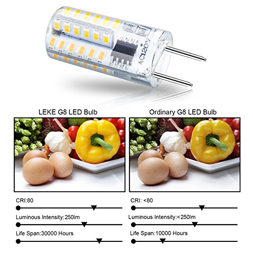 - ☞ Better Choice→AC 110V-130V, Replace 20W Ordinary Halogen Bulb by 2.5W G8 LED Bulb, Moisture Resistant 360 Degrees Light Angle, Low Heat, Safer than Halogen Bulbs, Easy to Install