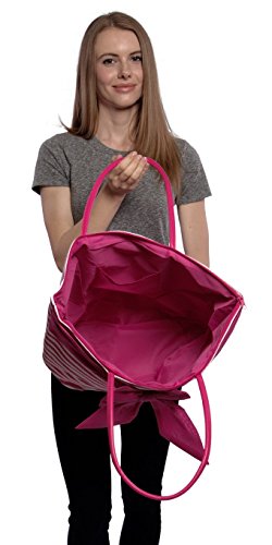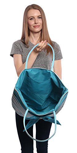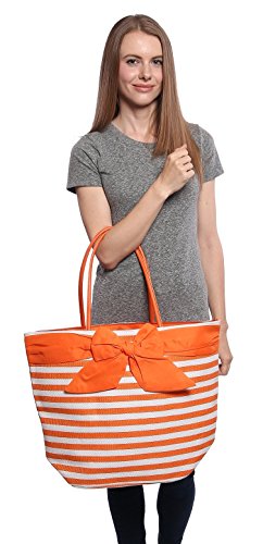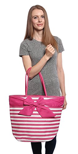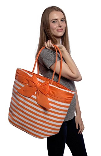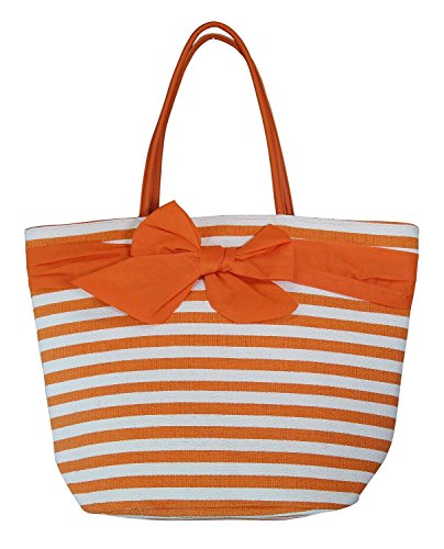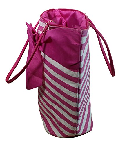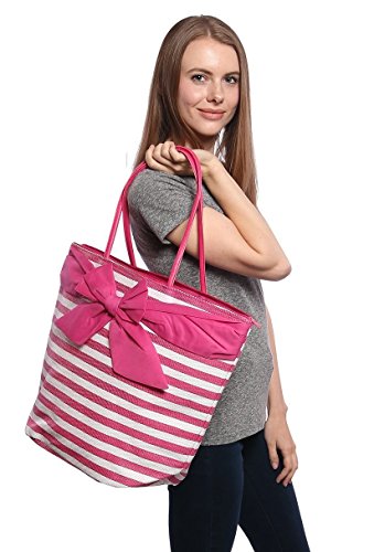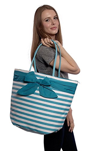 -. Title : Large Fashion Stripe Zippered Top Beach Bag Tote with Bow -20"x14"x7"