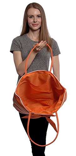 -. Feature : 10" shoulder drop / Matching Vinyl Handles / X-large - 20" x 14" x 7 " / Matching inner lining, inner slip pocket / Zippered Top
