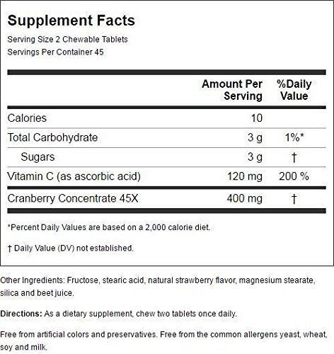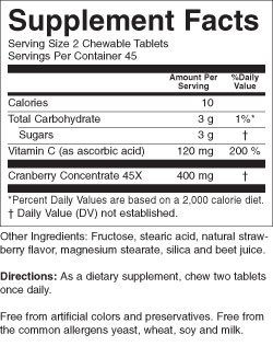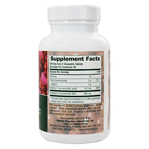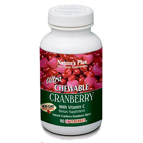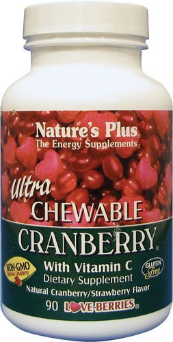 Studio : Nature's Plus Publisher : Nature's Plus Binding : Health and Beauty Product Description Ultra Chewable Cranberry 90 ChewableProduct Description Nature's Plus presents ULTRA CHEWABLE CRANBERRY. These heart-shaped Love-Berries are formulated with a unique flavor system that preserves the nutritional integrity of cranberries and combines it with the delicate tartness and natural sweetness of strawberries. Supplement FactsAmount Per Serving% Daily Value***Calories10Total Carbohydrate3 g1 %*Sugars3 g*Vitamin C (as ascorbic acid)120 mg200 %Cranberry Concentrate 45X400 mg* *Daily Value Not Established ***Percent Daily Values are based on a 2,000 calorie diet