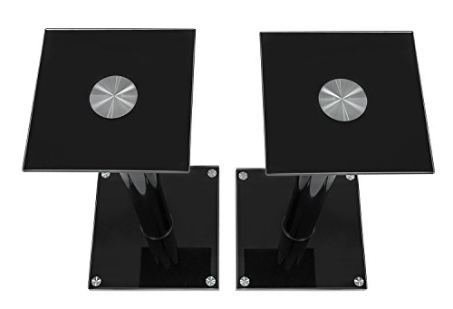 The bottom of the stand comes with spikes and rubber pads for carpet and hardwood floor mounting. The heavy-duty design provides 22 lbs load capacity. The large tempered glass plate (8 x 8 inch) is large to accommodate a large number of speaker models. With a total height of 23 inches, these stands will allow you to place the speakers at optimal seating height for music and home theater applications.
