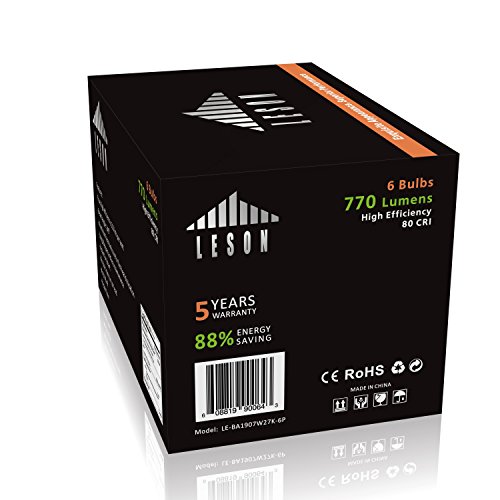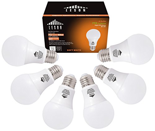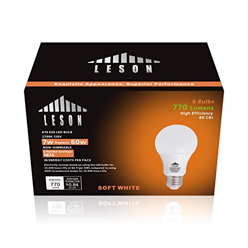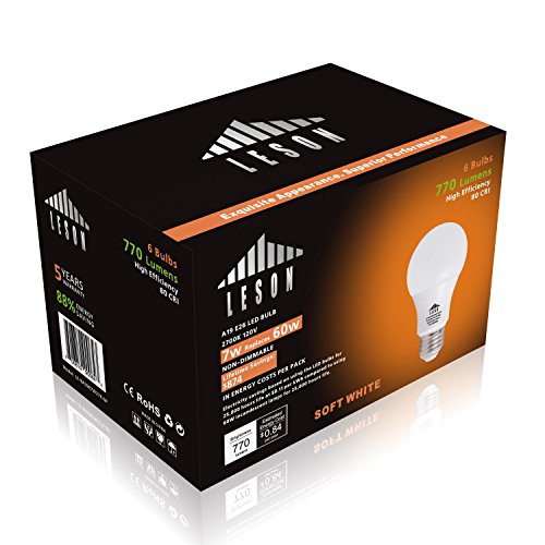 Leson A19 LED Light Bulb Standard E26/E27 Base 7W Energy Saving, Equivalent To 60 Watt Incandescent Bulbs, 770lm Soft/Warm White 2700k (6 Pack)