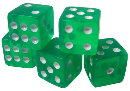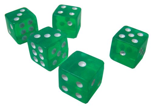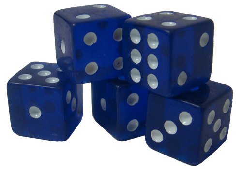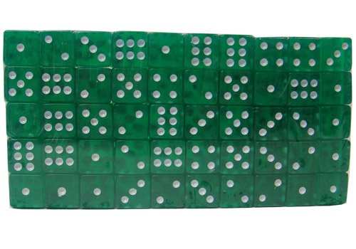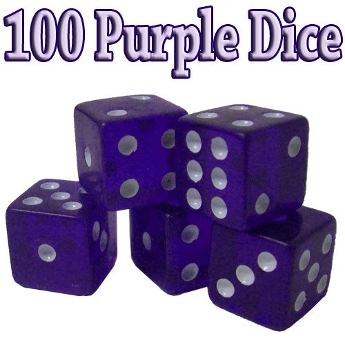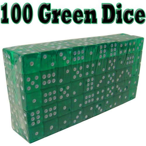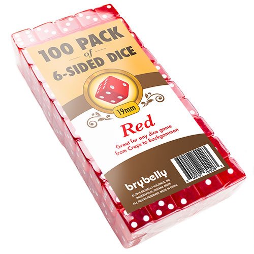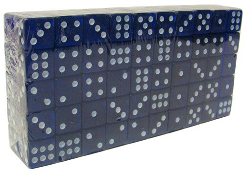 Product Description This set of 100 blue dice is perfect for any game from craps to Backgammon. Each die in the set features white dots and rounded edges that measure 19 mm. The bright, translucent colors make them easy to see and fun to use. 0