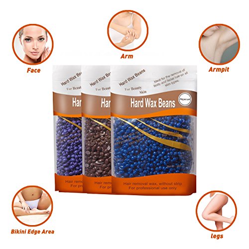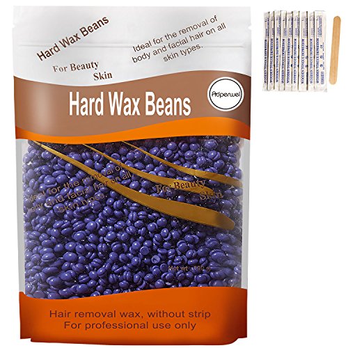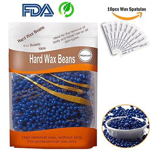 Hard Wax Beans, Auperwel Hair Removal Hard Body European Waxing Beans, Brazilian Pearl Hard Wax Beads for Women Men Home Waxing Include 10 Waxing Spatulas for bikini Arms, legs, armpit 300g/10oz