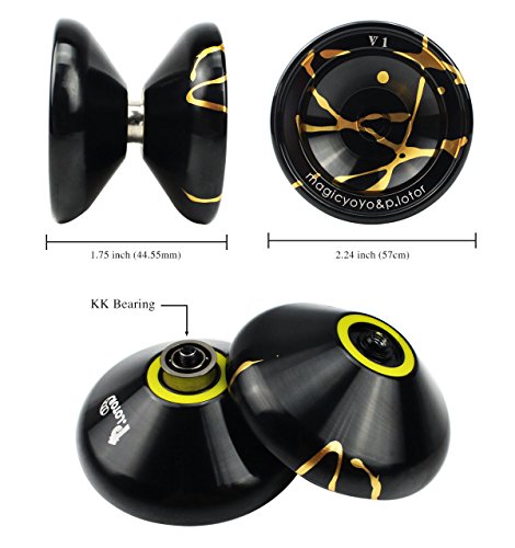Unresponsive YOYO, Magicyoyo P.LOTOR Newest Design V1 Polished Alloy Aluminum Professional Yo-yo Ball with Decent Package (Black with Golden Splashes)