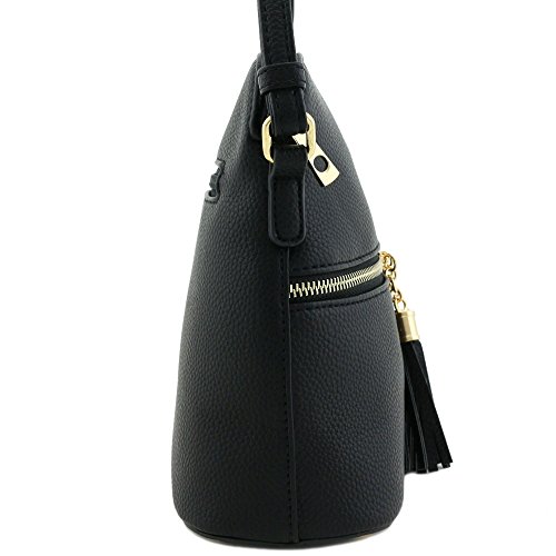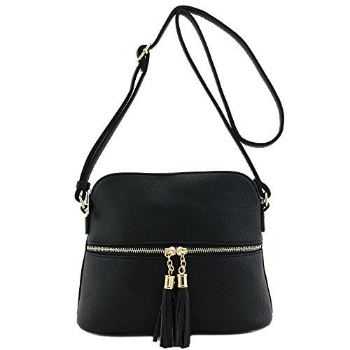 This tassel zipper pocket medium size crossbody bag makes easy to organize your everyday items.
