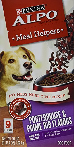 Purina ALPO Meal Helpers Roast Beef & Chicken Flavors adult soft dog food combines two equally mouthwatering flavors in one delicious meaty recipe to turn your dog’s mealtime into a flavor sensation. Tear open one of the convenient individual pouches, and pour it over your dog's favorite dry dog food, or stir it in to create a luscious blend of delicious flavors that perk up his palate according to the recommended serving suggestions for his weight. Made with real chicken and a taste your dog loves, this no-mess mixer goes straight into your dry dog food for fuss-free feeding. Each pouch of tender morsels contains 100% of the complete and balanced nutrition your adult dog needs. Mix it or top your dry dog food. No matter how you choose to feed your dog these Purina ALPO Meal Helpers, you’ll love the convenience it brings — almost as much as your dog loves the tail-wagging excitement it adds to his meal.