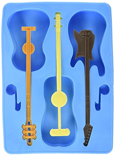 Generic Guitar Ice Cube Tray with 3 Stirrers, Blue