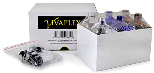 Vivaplex, 6, Large, 16 oz, Empty, Assorted Colors, Glass Bottles with Black Lotion Pumps
