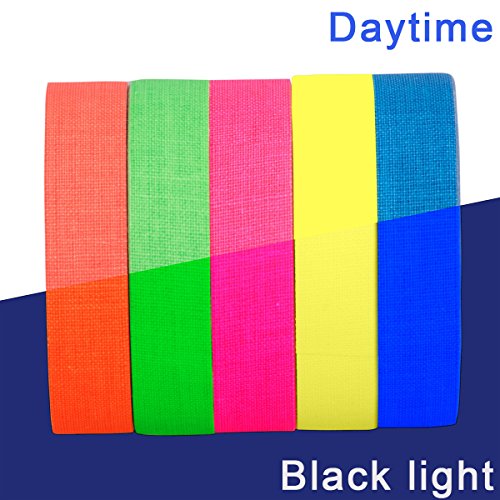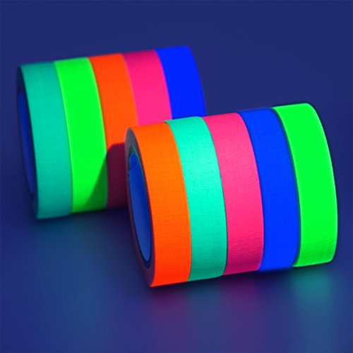 GIGALUMI 10-Pack UV Blacklight Reactive Glow in the Dark Tape, Fluorescent / Neon Gaffer Tape (.5 in x 16.5 feet)