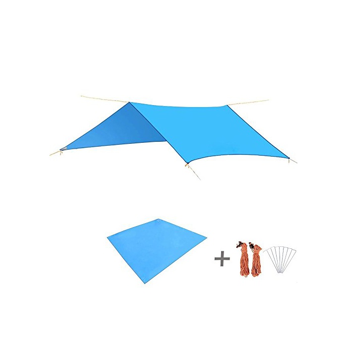 산 대피소용 -- Triwonder블루 씨트의 코너에는 금속 링이 6개 있고, 로프와 텐트 폴을 모두 사용하고, 해먹(hammock)의 커버(응달/비의 천막)를 간단하게 셋업 할 수 있습니다(텐트 폴은 장비 되고 굽히지 않습니다)