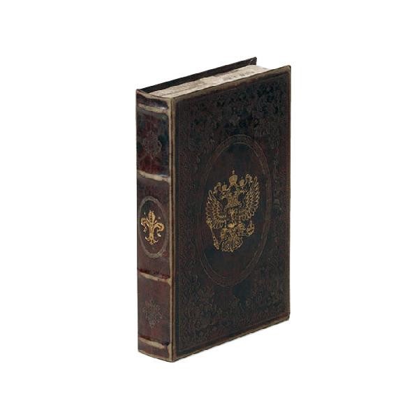 古い洋書風デザインが素敵なブック型の収納ボックス。小物やアクセサリー入れとしてだけでなくオブジェとして飾ってもオシャレです。