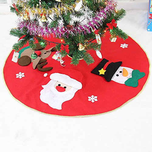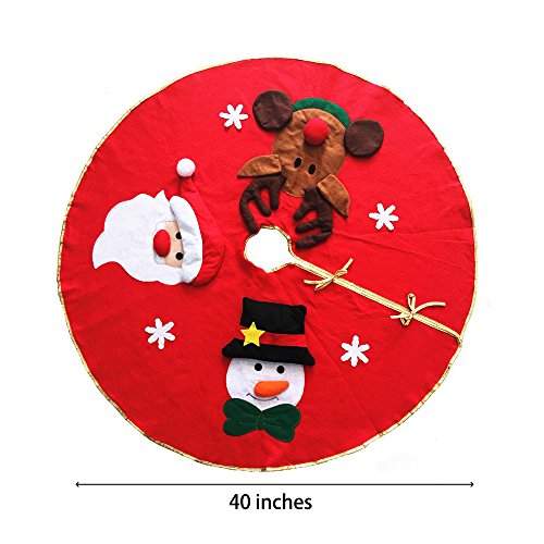 40" Christmas Tree Skirt Red Tree Mat with 3D Santa, Elk & Snowman Xmas Tree Skirt Holiday Party Decorations