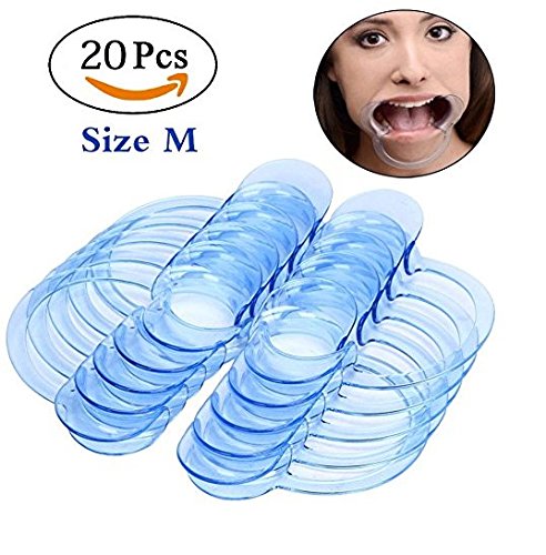 Please note: This product is transparent blue. Because of the shooting angle and the environment, the color of the product and material object may have slight differences, please understand. Adult teeth whitening intraoral cheek lip retractor mouth. Package content: 20pcs c-shape blue teeth whitening intraoral cheek lip retractor mouth opener.