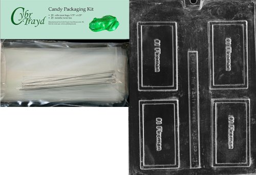 Cybrtrayd "No.1 Fireman" Business Card Chocolate Candy Mold with Packaging Bundle of 25 Cello Bags, 25 Silver Twist Ties and Chocolate Molding Instructions
