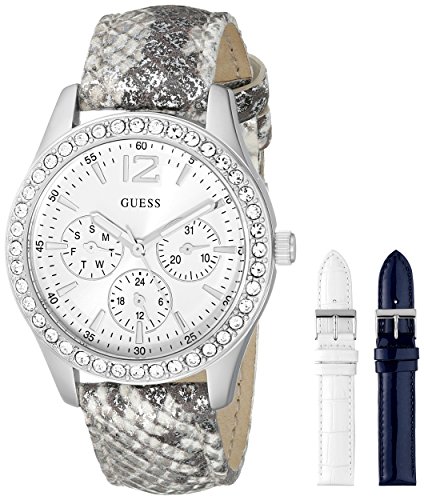 This watch by Guess is a new addition that is sure to impress many This magnificent timepiece features a two-tone leather band that screams for attention and a 38MM stainless steel case that backs it up The white dial brings the entire look together And with 30 meters 100 feet 3 atm water resistance and a mineral crystal youll be getting a fashionable watch that you can be sure will lastFeature