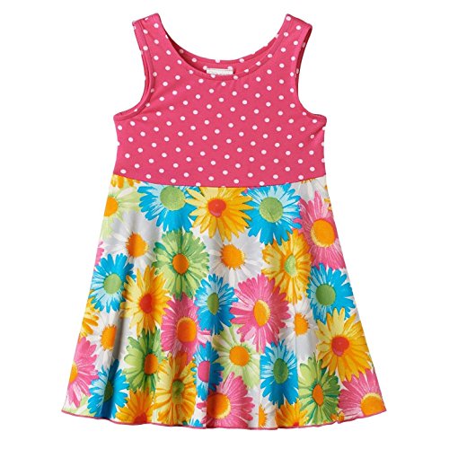 -. Title : Youngland Toddler Girls Skater Dress - Hot Pink Dot & Floral Print