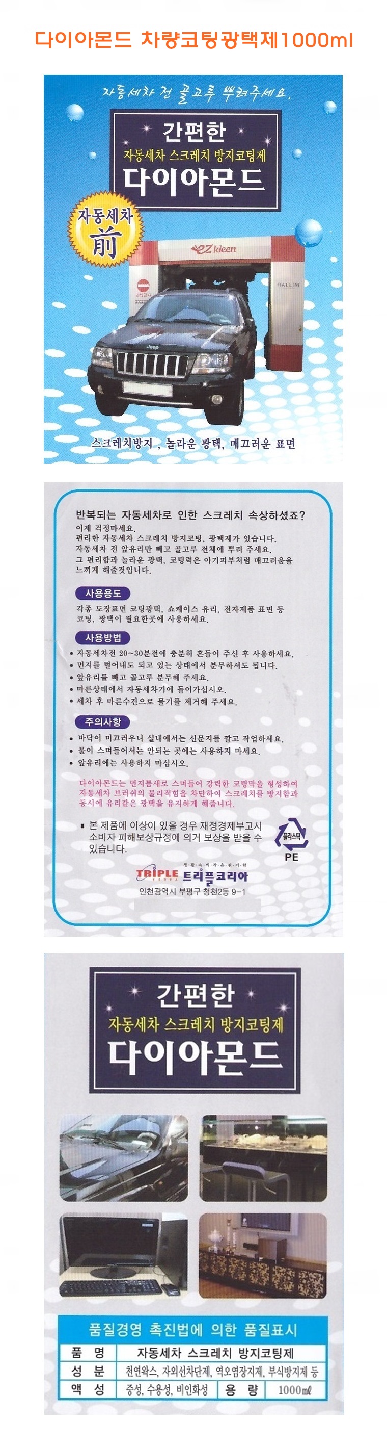 - 품명 및 모델명다이아몬드 차량코팅광택제 1000ml