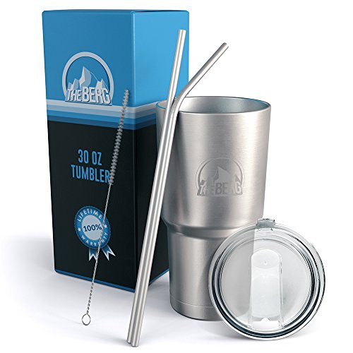 -. Feature : OUTPERFORMED THE YETI RAMBLER 30 OUNCE IN BOTH HOT COFFEE & ICE TESTS! See Images To Left For Test Results. / Premium Temperature Control for everything from coffee & soups to energy drinks & ice water. Our Dual-Wall Vacuum Insulation maintains liquid temperature while eliminating that sweaty mug or thermos. Just right - all the time - every time! / Our Tumbler comes complete with TWO Stainless Steel Reusable Straws - one straight, one bent, along with One Metal Wire Cleaning Brush. Add The Berg to your arsenal of Must-Haves, and you've got everything you need, right out of the gate. / Includes Upgraded BPA Free Slide Lock Lid - Because it matters. Not only is your liquid safely contained and temperature-controlled while in our travel tumbler, it remains safe from mug to taste buds. Quality is never compromised. / Unmatched 100% Satisfaction Lifetime Guarantee - We believe in The Berg so much that your purchase is backed by our Premium No Questions Asked Guarantee - With stellar durability and thought-out construction, why wouldn't we guarantee it? It just makes sense.
