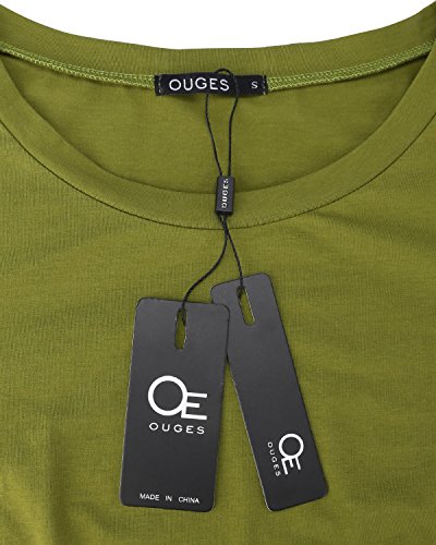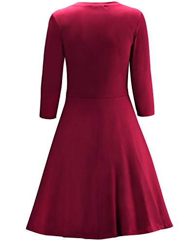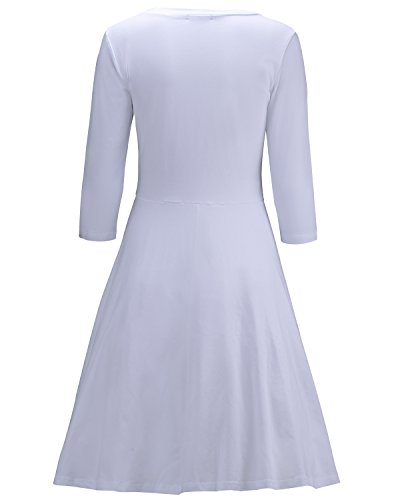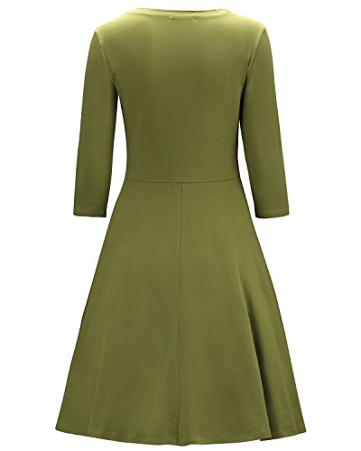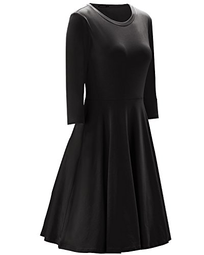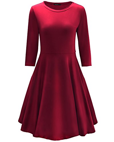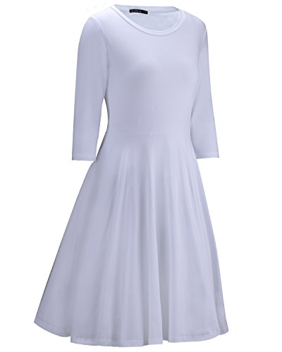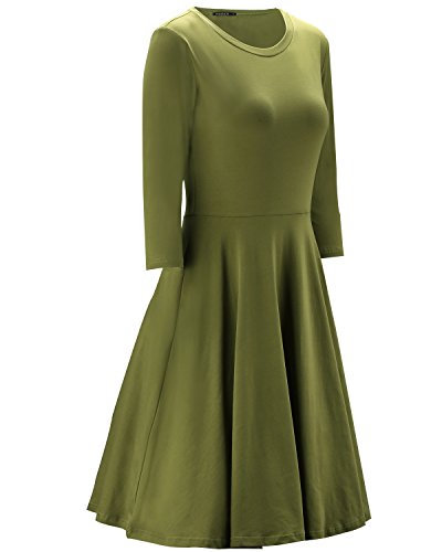 -. Title : OUGES Women's 3/4 Sleeve Casual Cotton Flare Dress