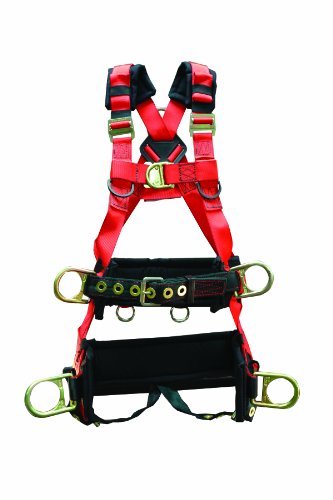 -. Feature : Six steel D-rings: at back, hips, chest, and seat strap / Quick-connect buckle on chest strap / For use fall arrest, positioning, suspension, ladder climbing / Made of nylon and polyester / Size: large