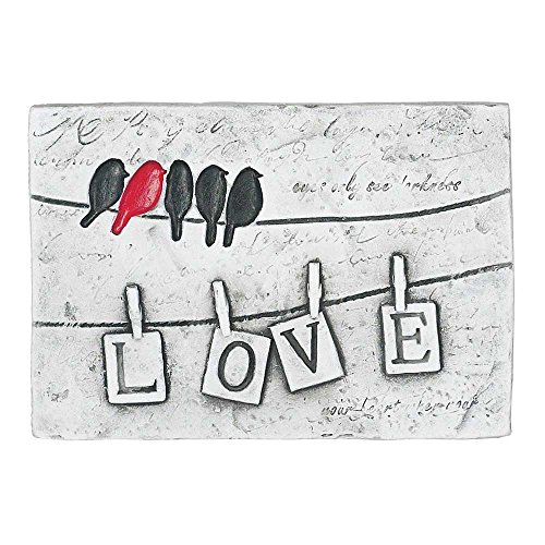 Love Birds on Clothesline Grey Speckled 7 x 5 Inch Cement Outdoor Garden Plaque Sign