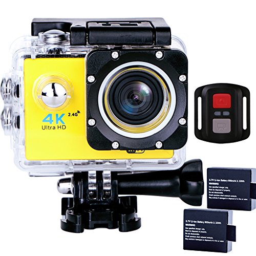 Sports Action Camera Ultra HD Waterproof DV Camcorder 4K WIFI Cam 1080P 170 Degree Wide Angle with Remote Yellow