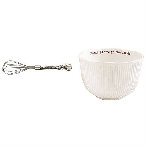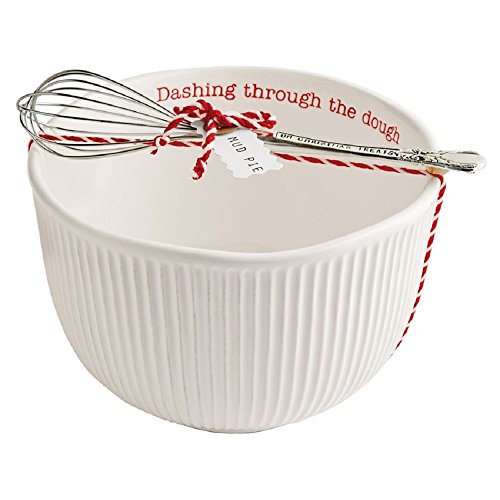 - Generous sized, footed ceramic mixing bowl features fluted exterior and debossed "dashing through the dough" sentiment on inner rim