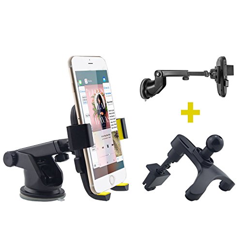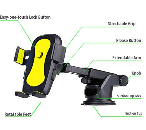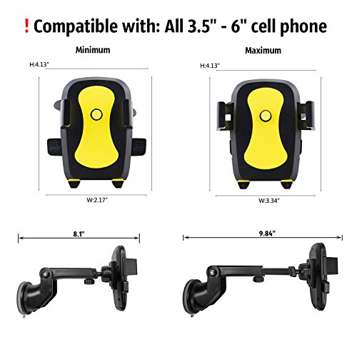 UNgHii 2-in-1 Universal Car Phone Mount [Extendable Arm] [Suction Cup] with Air Vent Cell Phone Holder for iPhone Samsung, All 3.5" to 6" Phone - Yellow