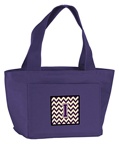 Caroline's Treasures CJ1058-IPR-8808 Letter I Chevron Purple and Gold Insulated Lunch Bag, Large, Multicolor