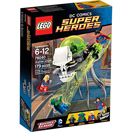 Bring down Brainiac with the Super Heroes! Dodge the cannon and flick missile of Brainiac's Skull Ship in LEGO® DC Comics Super Heroes Brainiac Attack with Superman's Super Jumper. Panic grips Metropolis as the evil Brainiac leads an Earth invasion in his tentacular Skull Ship! Martian Manhunter is cornered and needs help, so rush to the rescue with SupermanTM and Supergirl. Dodge the spaceship's flick missiles and activate the Super Jumper to disable the cannon. The threat is greater than ever, so the Super Heroes must work as a team to foil Brainiac's destructive mission. Includes 4 minifigures: Brainiac, SupermanTM, Supergirl and Martian ManhunterFeature