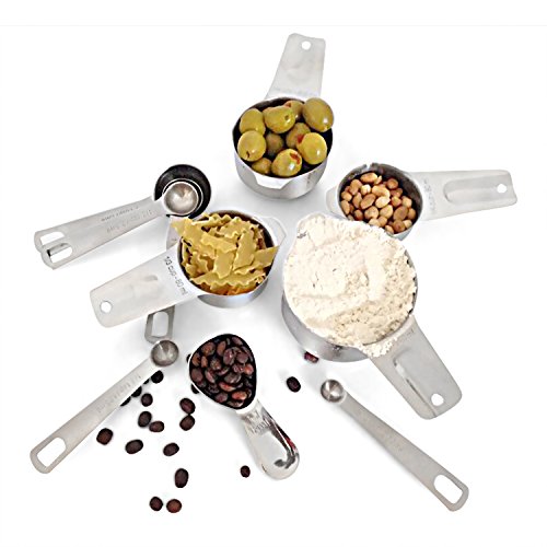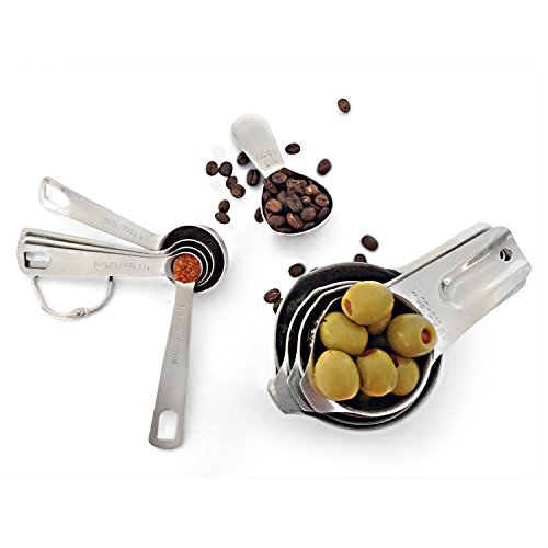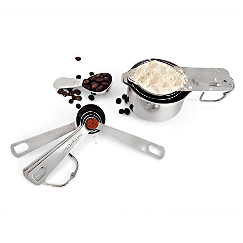-. Feature : ✅UPGRADE YOUR KITCHEN EQUIPMENT: Add these Professional Measuring set to your kitchen equipment and simplify your cooking experience! The Measuring Cups and Spoons will help you weigh all dry and liquid ingredients with great precision. Make mouthwatering dishes that have all of the best ingredients in the right quantity. / ✅FOUR LARGE MEASURING CUPS: The complete Measuring Set includes 4 large Measuring Cups. These Measuring Cups will help you weigh your ingredients while baking or when you need to measure bigger proportions for a meal. They have four different sizes that will facilitate your cooking. / ✅5 MEASURING SPOONS FOR PRECISION: Apart from the Measuring Cups, the Cooking Set also includes five Measuring Spoons. They are much smaller than the Cups, and they are ideal for weighing herbs, seasonings, spice, salt and pepper. They are small enough to fit in small jars where you store such ingredients. / ✅START YOUR DAY WITH THE BEST COFFEE: The final tool of the Measuring Set is a Coffee Scoop. With it, you can measure how much coffee powder you want to add to your coffee. In this way, every coffee you make will be like a gift from heaven! Start your day with the most delicious homemade coffee. / ✅A DURABLE SET WITH A BEAUTIFUL DESIGN: All of the Weighing Cups and Measuring Spoons, as well as the Coffee Scoop, are made with high quality stainless steel. This means that all of these tools are ✅100% safe and unbelievably durable. Use them all the time and wash them as often as needed. They will always be as good as new!