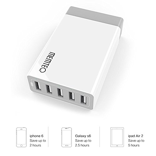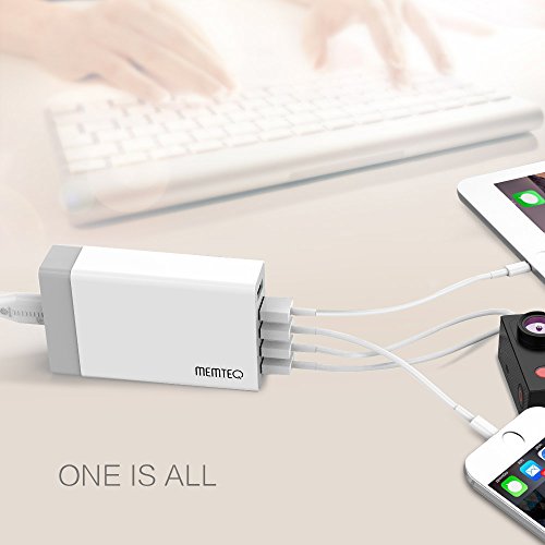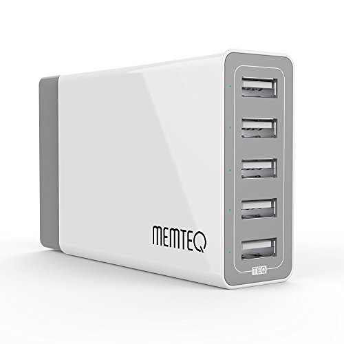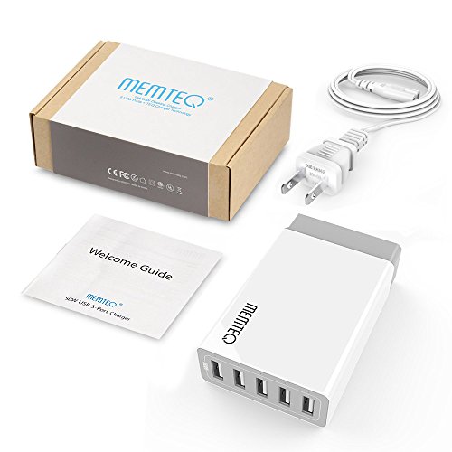 MEMTEQ® 50W 10A 5-Port USB Desktop Rapid Charger Power Adapter with Intelligent USB Travel Charger with SmartIC Technology for Smartphone, Tablet, Power Bank and Other USB Powered Devices, White
