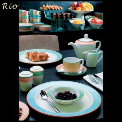 -. Feature : Model #: 15290165 / Pattern: Simplicity Rio Green / Material: China / Color: White with Green Band / Diameter: 4-5/8"