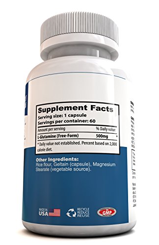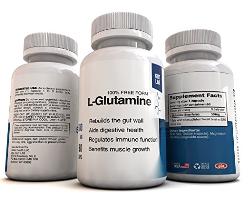 L-Glutamine by GUT LAB - 60 capsules x 500mg - 1 Month Supply - 100% Pure and Free Form - High Absorption - Helps to Heal the Gut Wall, Strengthen the Intestinal Barrier, Modulate Immune Function, and Promote Muscle Growth