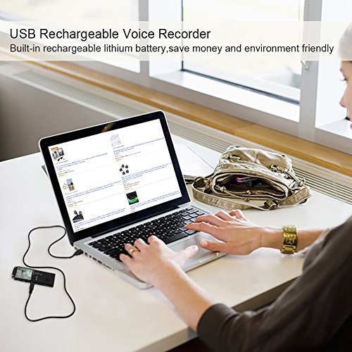 USB Rechargeable Voice Recorder--Built-in rechargeable lithium battery can save your money and protect the environment.On the Top Right have Battery Indicators;Auto off when no sound in which will help to save the power;