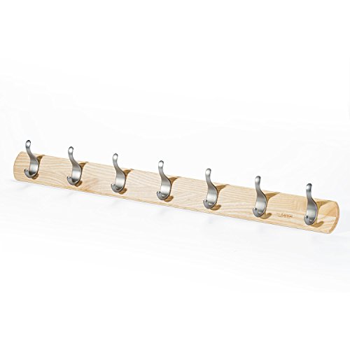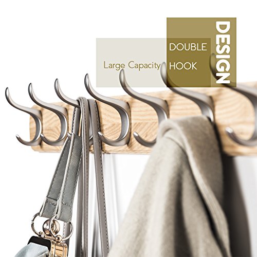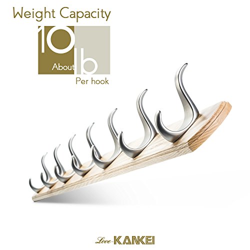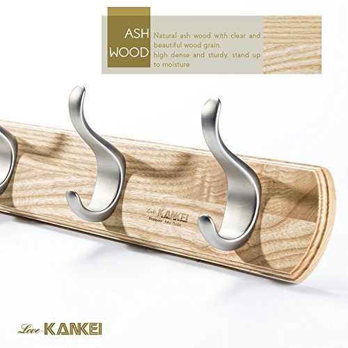 - [HIGH END COAT RACK] Board base of the coat rack made of real ash wood, hooks made from zinc die cast coated with nickel, super strong and durable