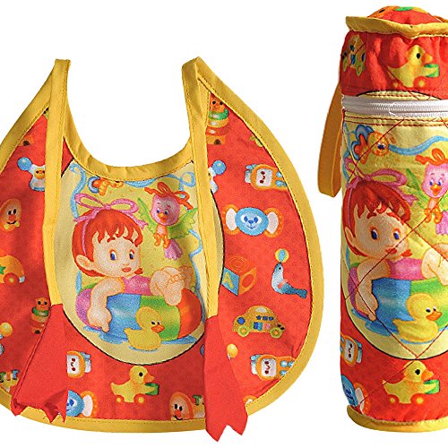 Digitally Printed, 1 Pcs Baby Bib and 1 Pcs Bottle Cover (Set)
