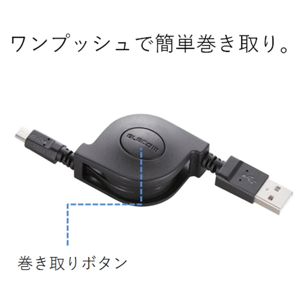 It is a wind-up type microUSB cable that can be used for ultra-fast charging of smartphones by using it together with high-output AC charger and mobile battery.