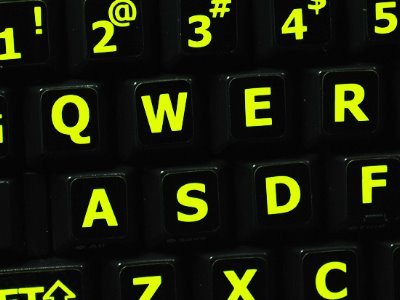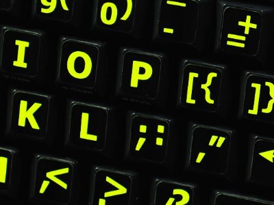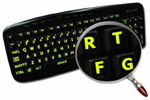 Large Lettering English US Glowing Fluorescent keyboard stickers are vibrant, bright-colored which are proven to be the best solution to work on your computer even in dim or poorly lit places. Glowing characters pick up any source of light coming in/ through ( such as light from your own monitor, laptop, or even USB light etc, etc) - allowing keyboard characters to brighten up immediately by reflecting the light, yet, stickers are not the source of light themselves. It is just the same effect as a road signs reflection, or strips on uniform worn by constriction workers or police. These Large Lettering English US Glowing keyboard stickers are made of a high quality materials, are durable and efficient. Each sticker is covered with a special protective coat which extremely increases their durability. Large Lettering English US stickers suitable for variety of keyboard Desktops, Laptops and Notebooks. Glowing keyboard stickers have become very popular amongst people traveling a lot, especially by plain, and of course, students....who often work at night, in the dark, and therefore, don't want to bother others or be disturbed. Take advantage of progressive technology working for you!!!