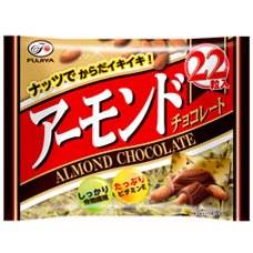 原材料:砂糖、カカオマス、アーモンド、全粉乳、植物油脂、ココアバター、乳化剤(大豆由来)、香料(大豆由来)