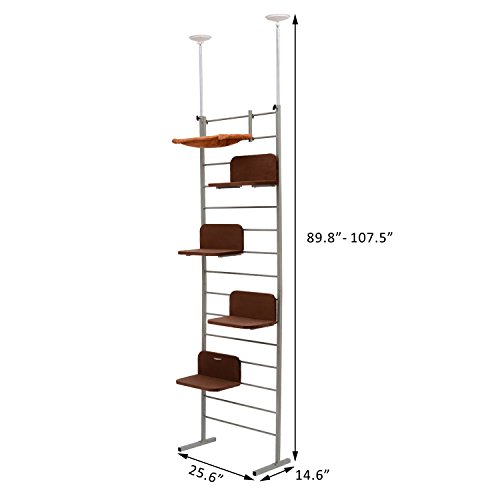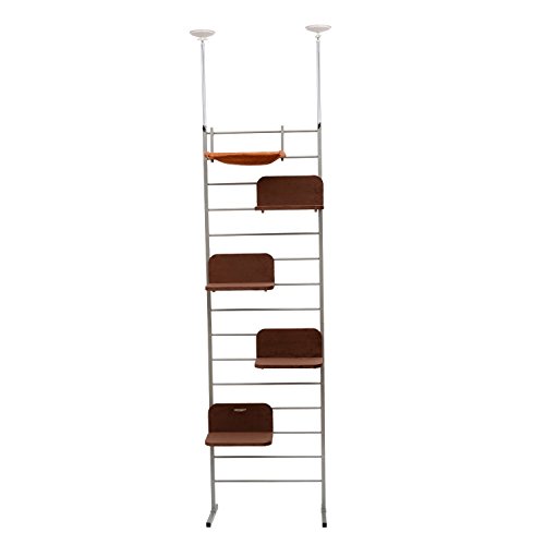 Studio : Pawhut Publisher : Pawhut Binding : Misc. Product Description Give your cat the ability to fulfill its natural desire to climb with this floor to ceiling Pawhut climbing tower. Constructed with durable steel tubing your cat will be able to use this without having to worry about scratching the metal. It comes with four movable perches along with a plush hammock to give your pets multiple areas to relax. Two spring loaded brackets make it easily movable from room to room and it secures tightly with the ceiling tension design to give it sturdy support. The high perch allows your cat to follow its instincts and get to the top where it will love being able to watch over its domain. This unique and versatile ceiling to floor cat tower from Pawhut will be your cats favorite place to sleep comfortably while also saving space for your room. Features: - Floor to ceiling tension to keep tower stable - Four movable perches and hammock - Soft plush covered perches give great places for cats to relax - Spring loaded brackets make it easily movable from room to room - Simple assembly required but all necessary parts are included Specifications: - Full Size: 25.59"W x 14.57"D x 89.76" ~ 107.48"H - Adjustable Height: 89.76" ~ 107.48" - Max Platform Capacity: 11lbs - Materials: steel tube, 600D polyester fabrics, 16mm chipboard 0