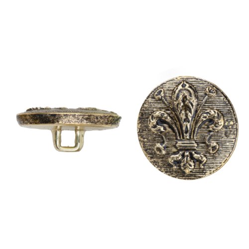 C&C Metal Products 5040 Fleur De Lis Metal Button, Size 36 Ligne, Antique Gold, 36-Pack