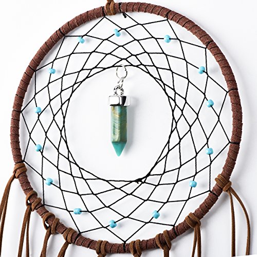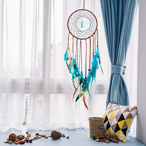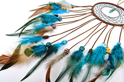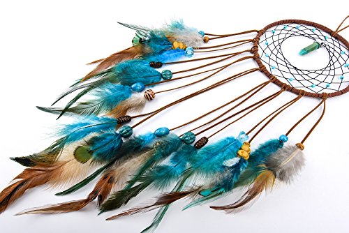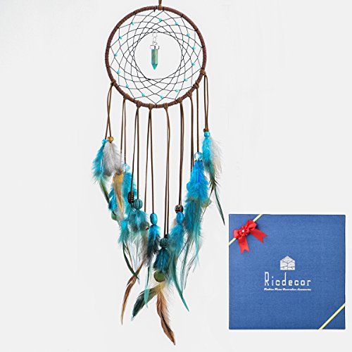 Ricdecor Handmade Indian Peacock Feathers Dream Catcher Wall Hanging Car Hanging Decoration Ornament 18 Inch Long (Blue Diamond)