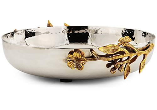 - UNIQUE HAND HAMMERED FLOWER AND LEAVES DESIGN: Each centrepiece bowl has been carefully hand hammered so as to feature a unique, well-crafted design. In addition, the flower and leaves side design which has been enriched by details such as lively buds and fine petals, as well as the glistening silver color make this modern table bowl a must have decorative element.